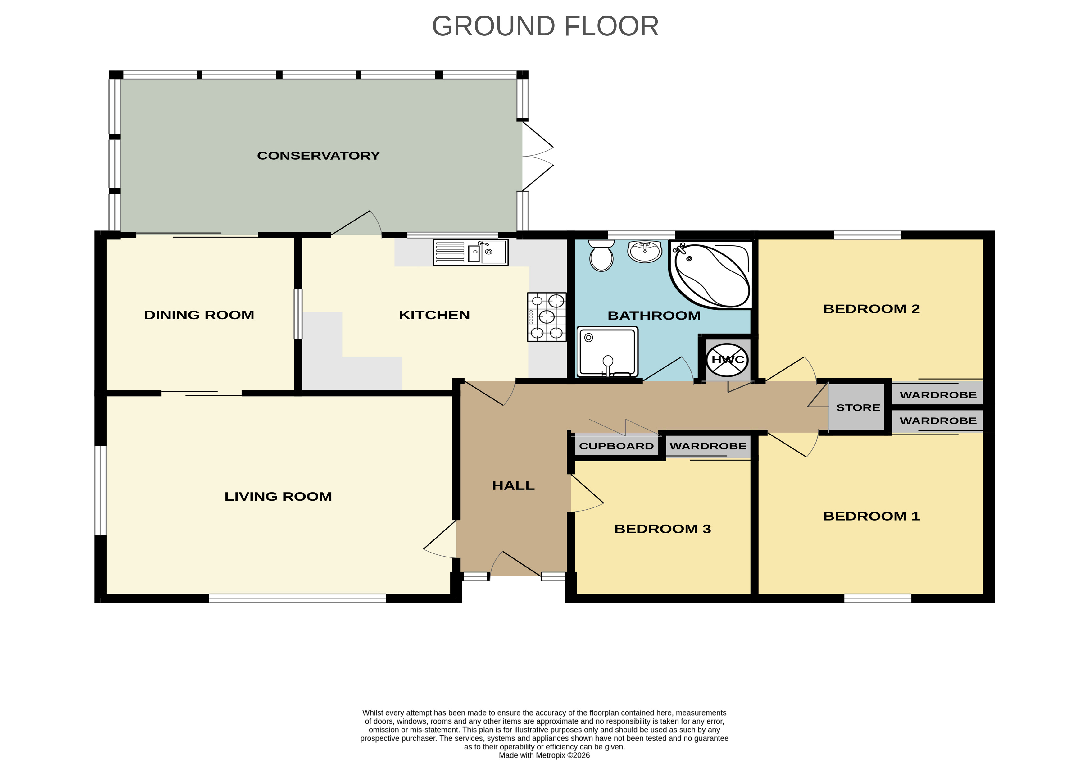 BEDROOM 3 (2.84M X 2.60M) not including wardrobes