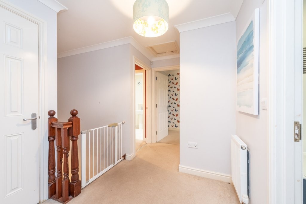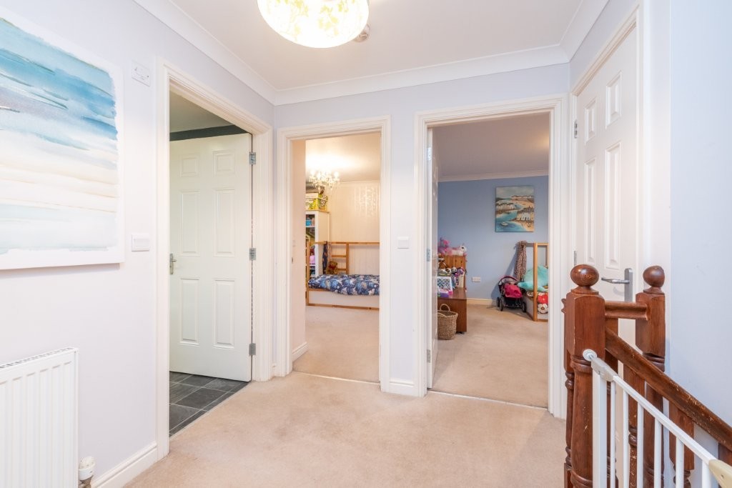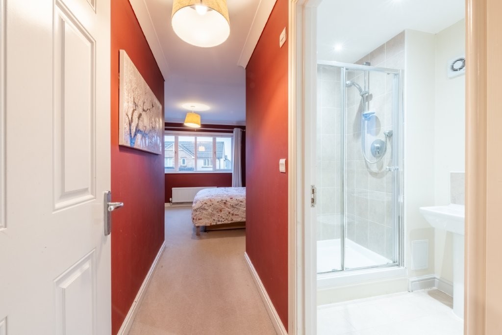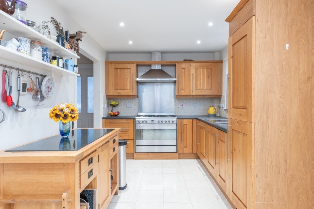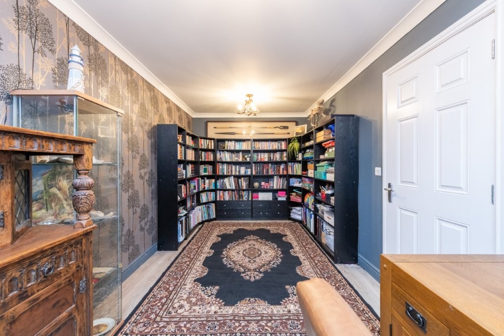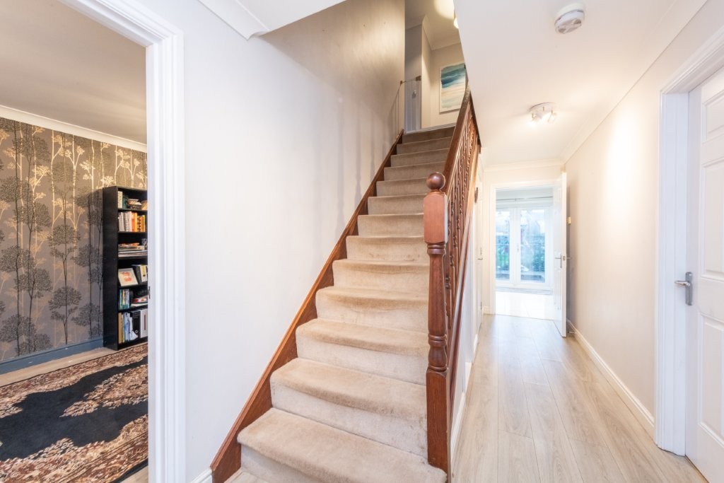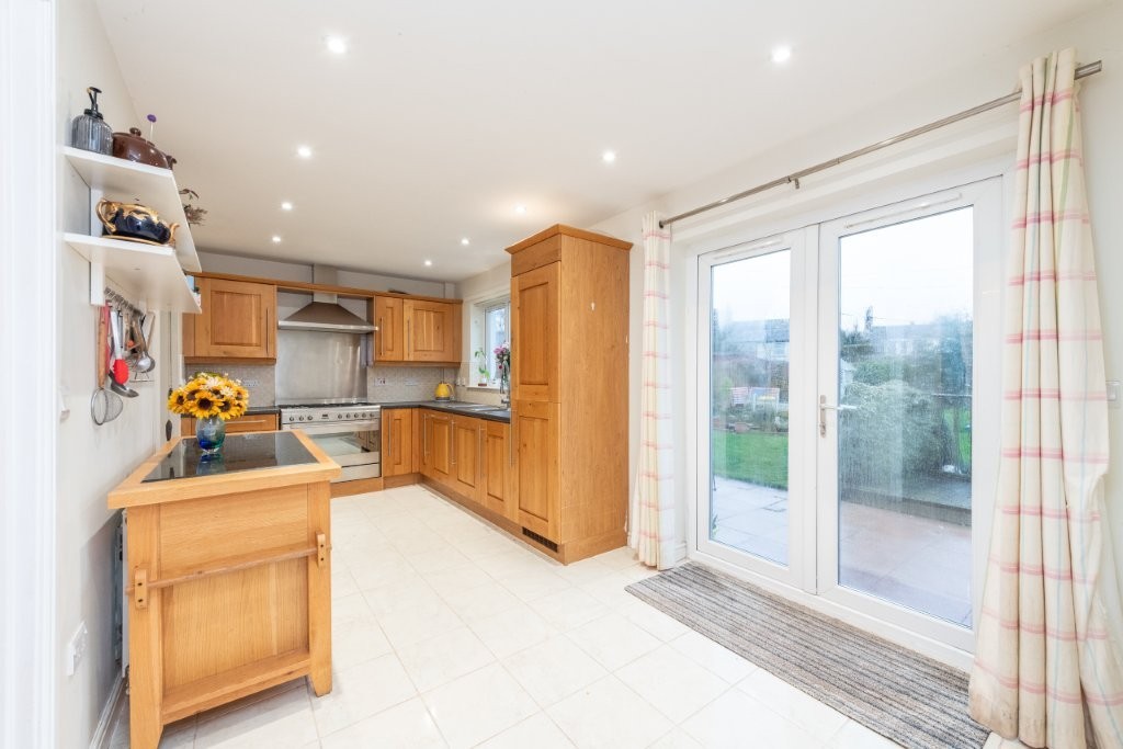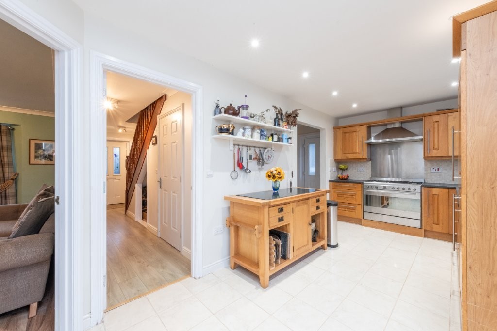 This impressive detached four-bedroom home sits on a substantial garden plot and offers bright, spacious accommodation throughout, perfectly suited to modern family living. The ground floor provides excellent flexibility, featuring a second reception room that can easily serve as a fifth bedroom if required. A generous through living and dining room creates an ideal space for both relaxing and entertaining, with a connecting door leading into the spacious breakfasting kitchen. From here, French doors open directly onto the attractive rear garden, seamlessly blending indoor and outdoor living. The kitchen further benefits from an opening into a practical utility area, which in turn provides access to the side patio via an external door. A convenient ground floor WC completes the lower level. Upstairs, the sense of space continues with four well-proportioned double bedrooms, two of which include large built-in wardrobes. The principal bedroom enjoys the added luxury of an en-suite shower room, while a stylish family bathroom serves the remaining bedrooms. Early viewing is highly recommended to fully appreciate the generous proportions of both the property and its impressive plot.